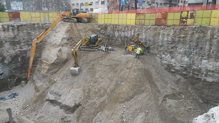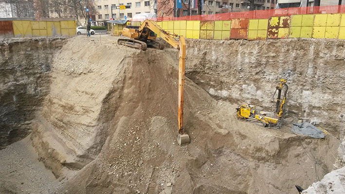 Trikrat sidrana zaščita gradbene jame – globina izkopa 11 m
